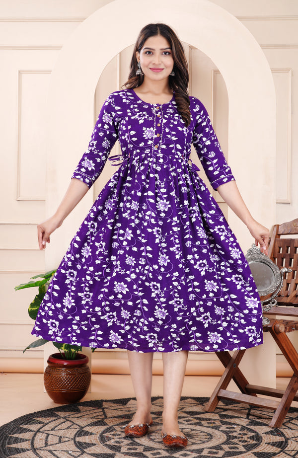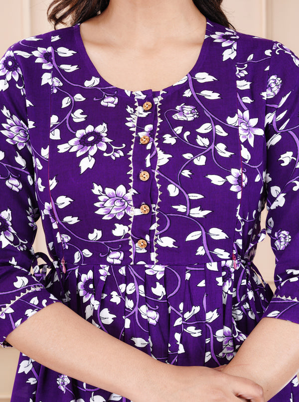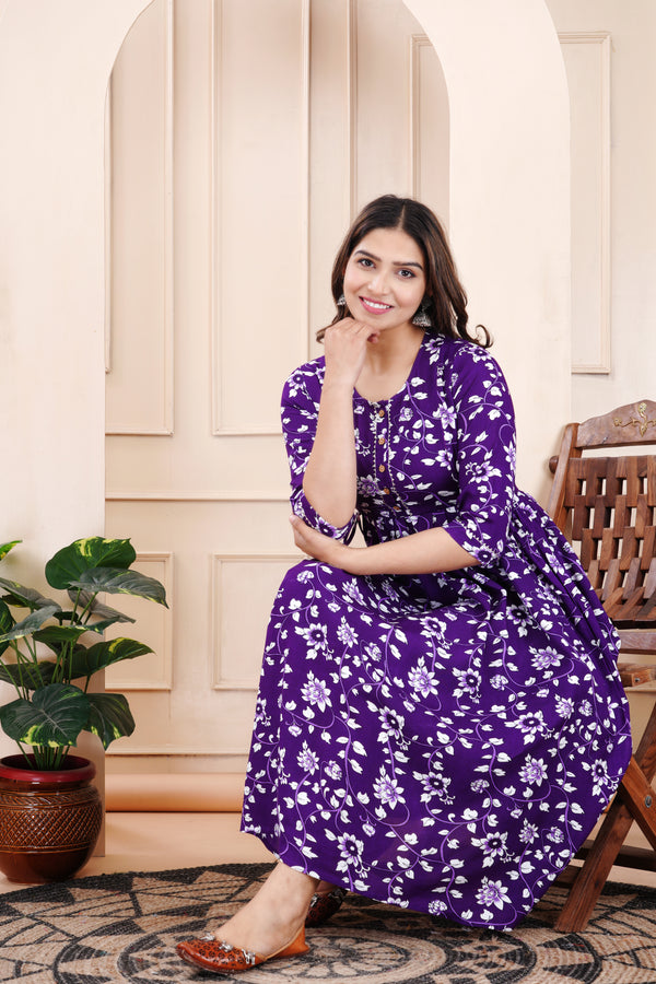 Embrace Comfort and style during motherhood with our Anarkali Feeding & Maternity Kurti, thoughtfully designed for expecting and new moms. Crafted from 100% pure cotton (60*60 cambric), this breathable and lightweight kurti ensures you stay cool and comfortable all day long.