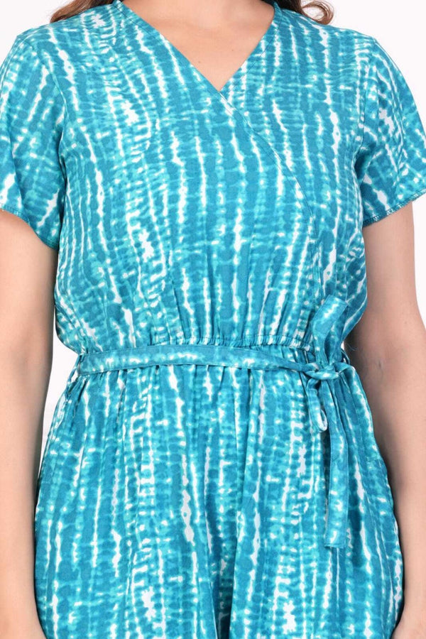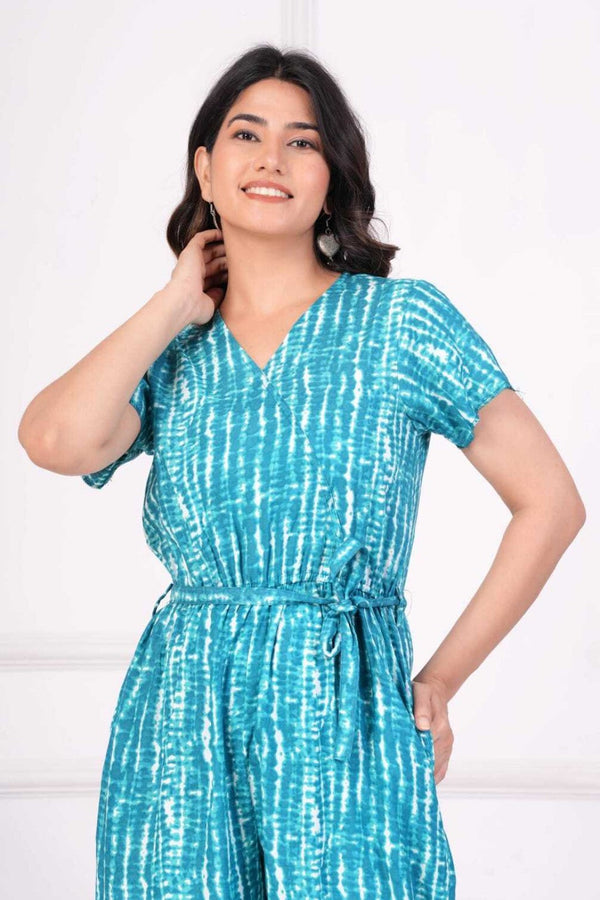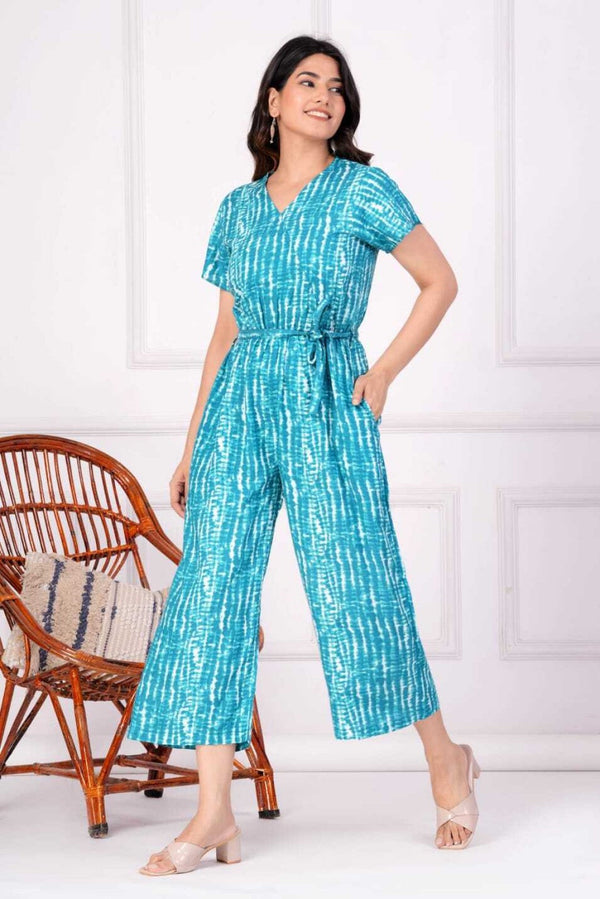 AtoZ Mart Rayon Printed Jumpsuit for Women (Blue)